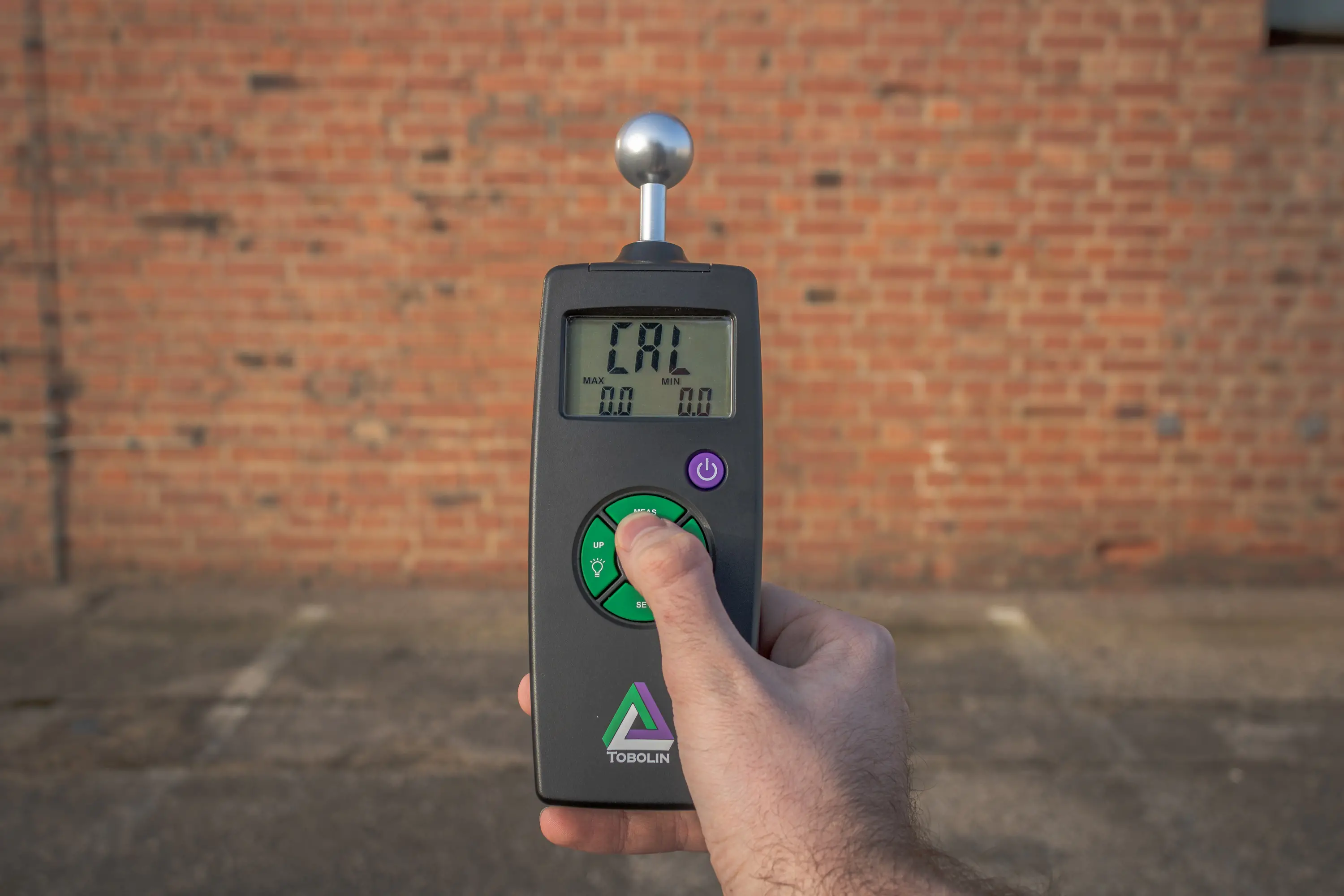 Der Kugelmesskopf des TOBOMETER HY muss senkrecht und fest auf die Oberfläche des zu untersuchenden Materials aufgesetzt werden. Halten Sie das Gerät bei den Messungen genauso wie während der automatischen Kalibrierung in der Hand und achten Sie auf einen Abstand von 8-10 cm zu anderen Gegenständen.