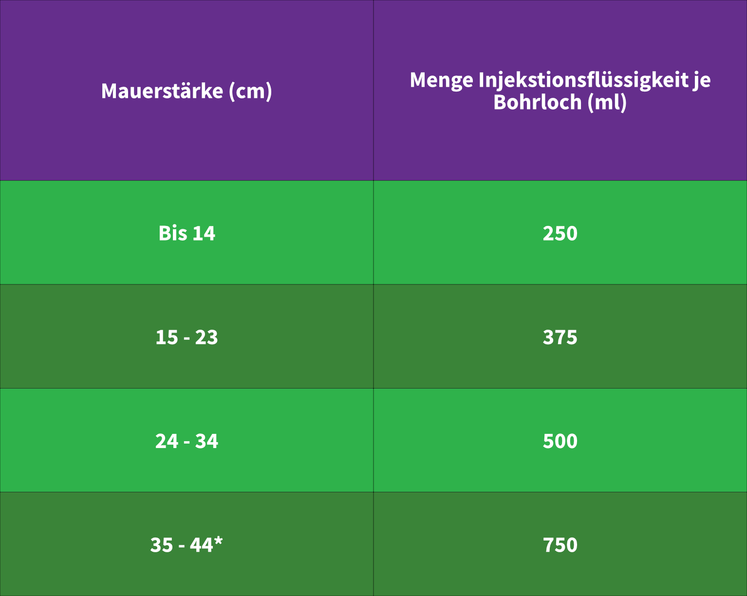 - TOP VERTEILUNGSVERMÖGEN: Daher ist ein Bohrlochabstand bis zu 20 cm möglich. Die Anwendung ist für innen und außen geeignet - ideal zur Bekämpfung von aufsteigender Feuchtigkeit.