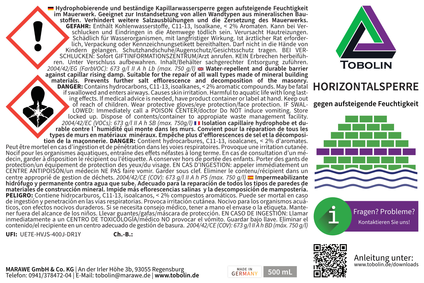 - TOBOLIN HORIZONTALSPERRE bietet einfache Anwendung und schnelle Durchführung mit dem wasserfreien Injektionssystem. Absolut dicht - keine undichten Trichter mehr.