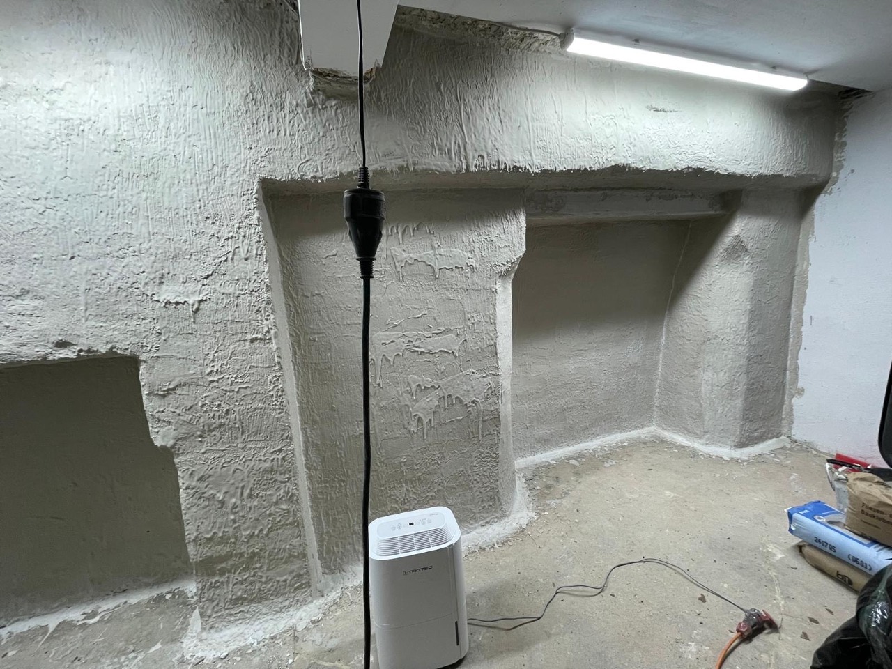 Die Abdichtungsschicht wird auf die Innenseite der Wand aufgebracht und bildet eine wasserundurchlässige Barriere. Sie verhindert, dass Wasser in den Raum eindringt, und sorgt gleichzeitig dafür, dass vorhandene Feuchtigkeit nach innen kontrolliert verdunsten kann. Zementgebundene Dichtschlämmen besitzen dabei eine hohe Haftung und Druckfestigkeit, um dem hydrostatischen Druck von außen standzuhalten.