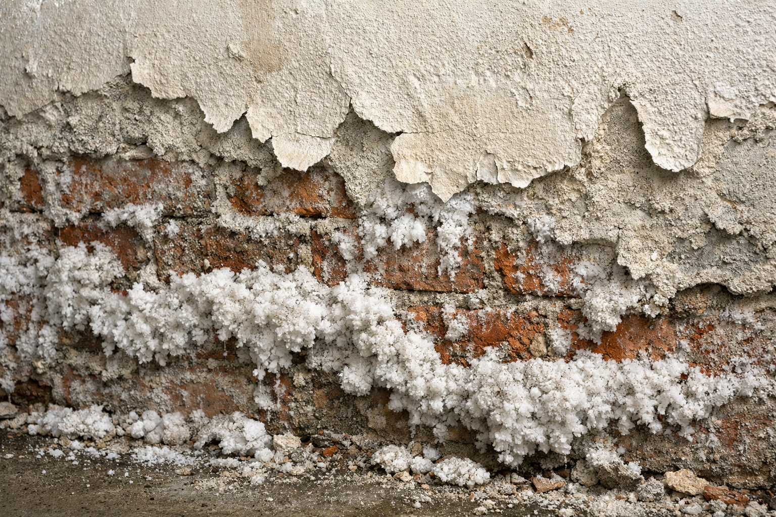 Versalzungen im Mauerwerk entstehen, wenn Wasser in die Wand eindringt und dabei gelöste Salze mitführt. Verdunstet das Wasser an der Oberfläche, bleiben diese Salze im Mauerwerk und besonders im Innenputz zurück. Dort kristallisieren sie an der Grenzfläche zwischen Wand und Putz aus und vergrößern ihr Volumen. Die Folge: Der Putz wird geschädigt, blättert ab und verliert seine Haftung.