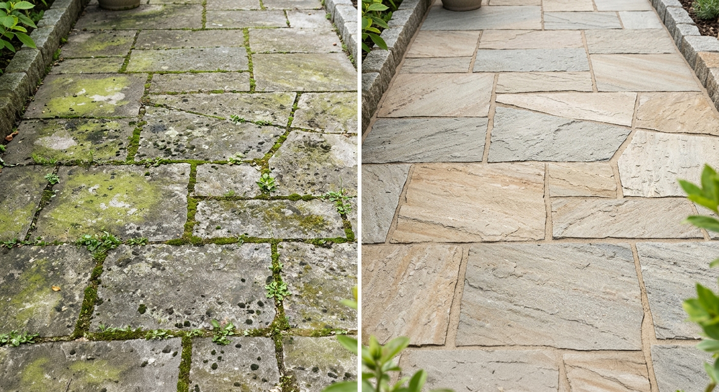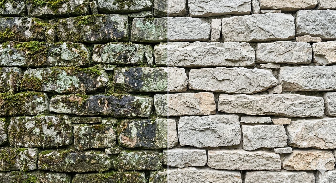 - KRAFTVOLL: Gegen hartnäckige Verschmutzungen auf Stein: Die High-Performance-Rezeptur löst Grünbelag, Algen, Pilze und Flechten sowie Schmutz in kurzer Zeit. Das spart Aufwand und macht Hochdruckreiniger überflüssig – Terrassen und Pflaster wirken nach Anwendung wieder deutlich heller.