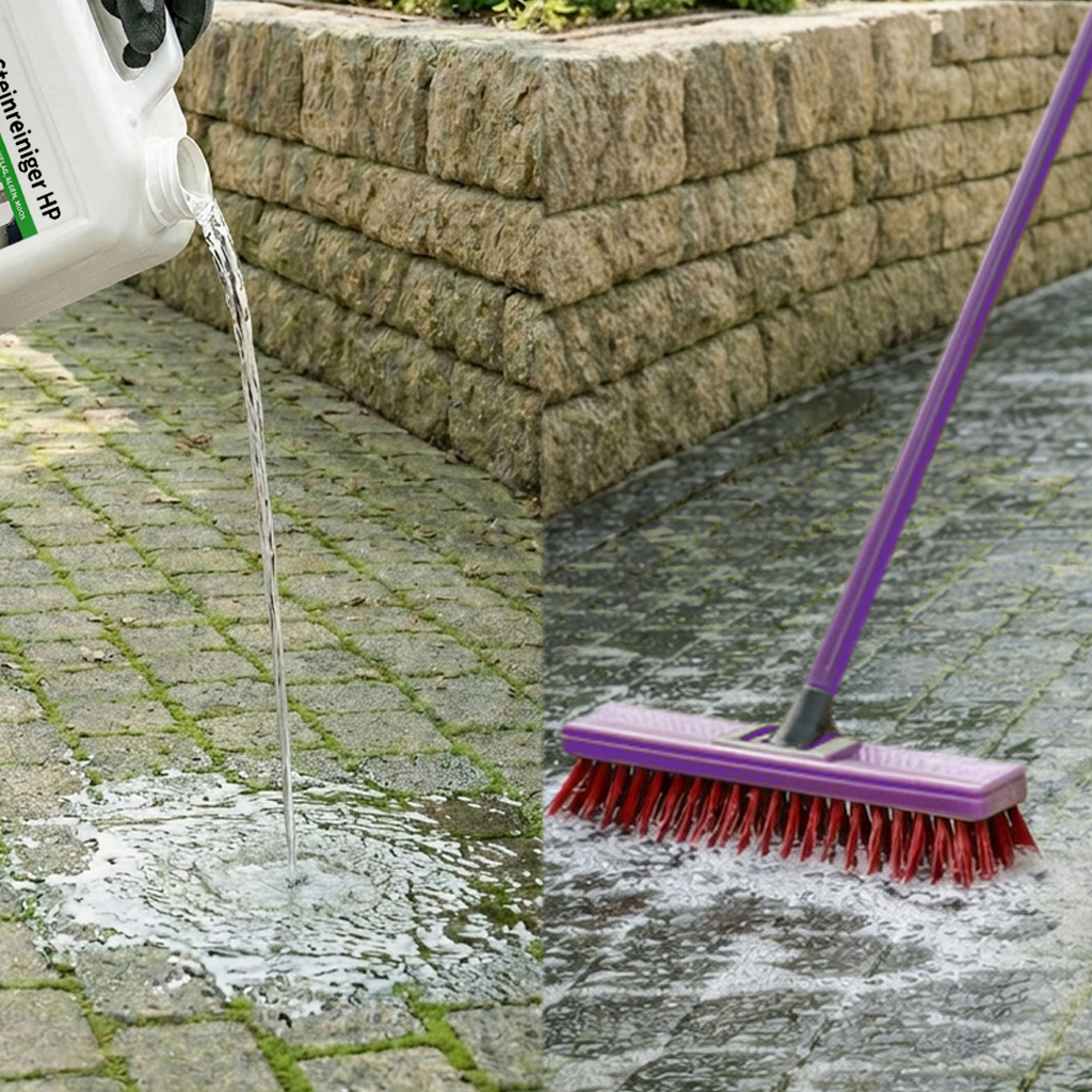 - SCHNELL & EINFACH: High-Performance-Steinreiniger für eine unkomplizierte Sofortanwendung. Einfach auftragen oder aufsprühen, einarbeiten und einwirken lassen – fertig. Entfernt Grünbelag sowie Algen, Pilze, Flechten und Schmutz sehr schnell. Ideal für Terrassen, Pflastersteine und Außenanlagen, wenn es schnell sauber werden soll.